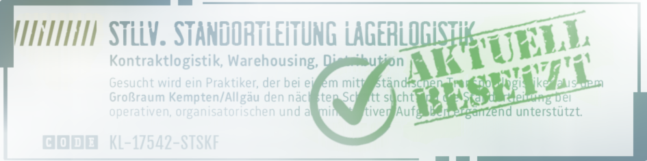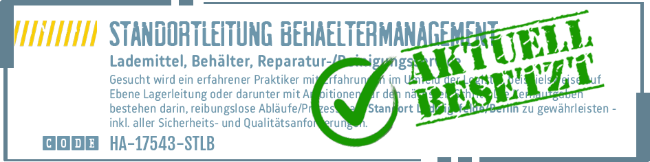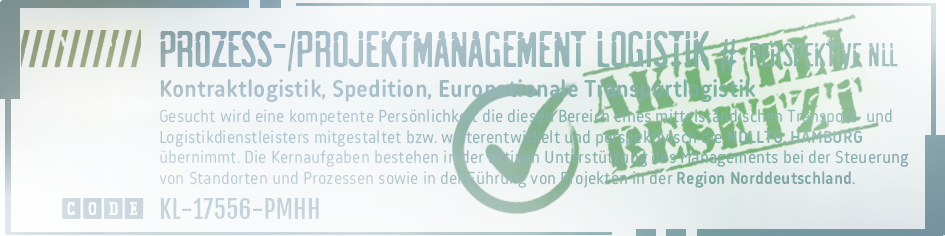 Finden Sie hier die passende Herausforderung für sich und kontaktieren Sie uns bei Interesse direkt mit Bezug auf den entsprechenden CODE zu den jeweiligen Vakanzen. Dann erfahren Sie vertraulich mehr über die Aufgabe sowie das ausschreibende Unternehmen.