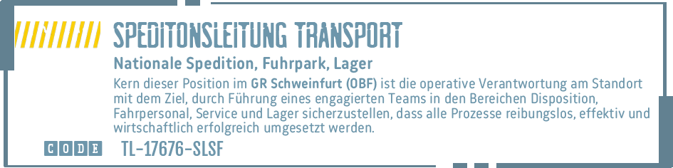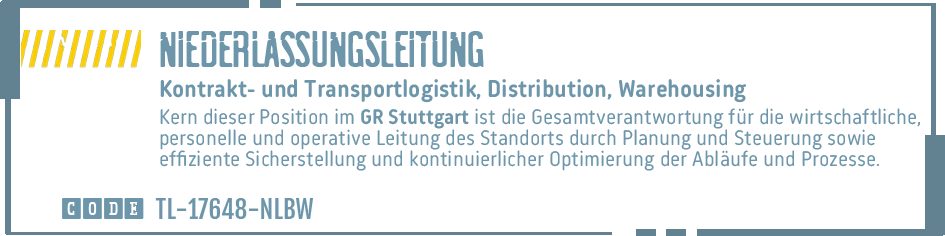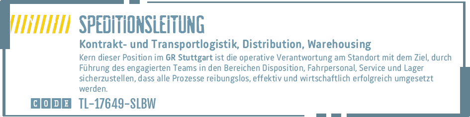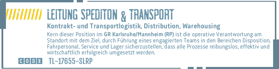SALES MANAGER TRANSPORTLOGISTIK # REGIONALLEITUNG SPEDITION # HEAD OF OPERATIONAL EXCELLENCE # NIEDERLASSUNGSLEITUNG # SPEDITIONSLEITUNG # OPERATIONS MANAGER AUTOMOTIVE # LEITUNG SPEDITION TRANSPORT # SEEFRACHTLEITUNG